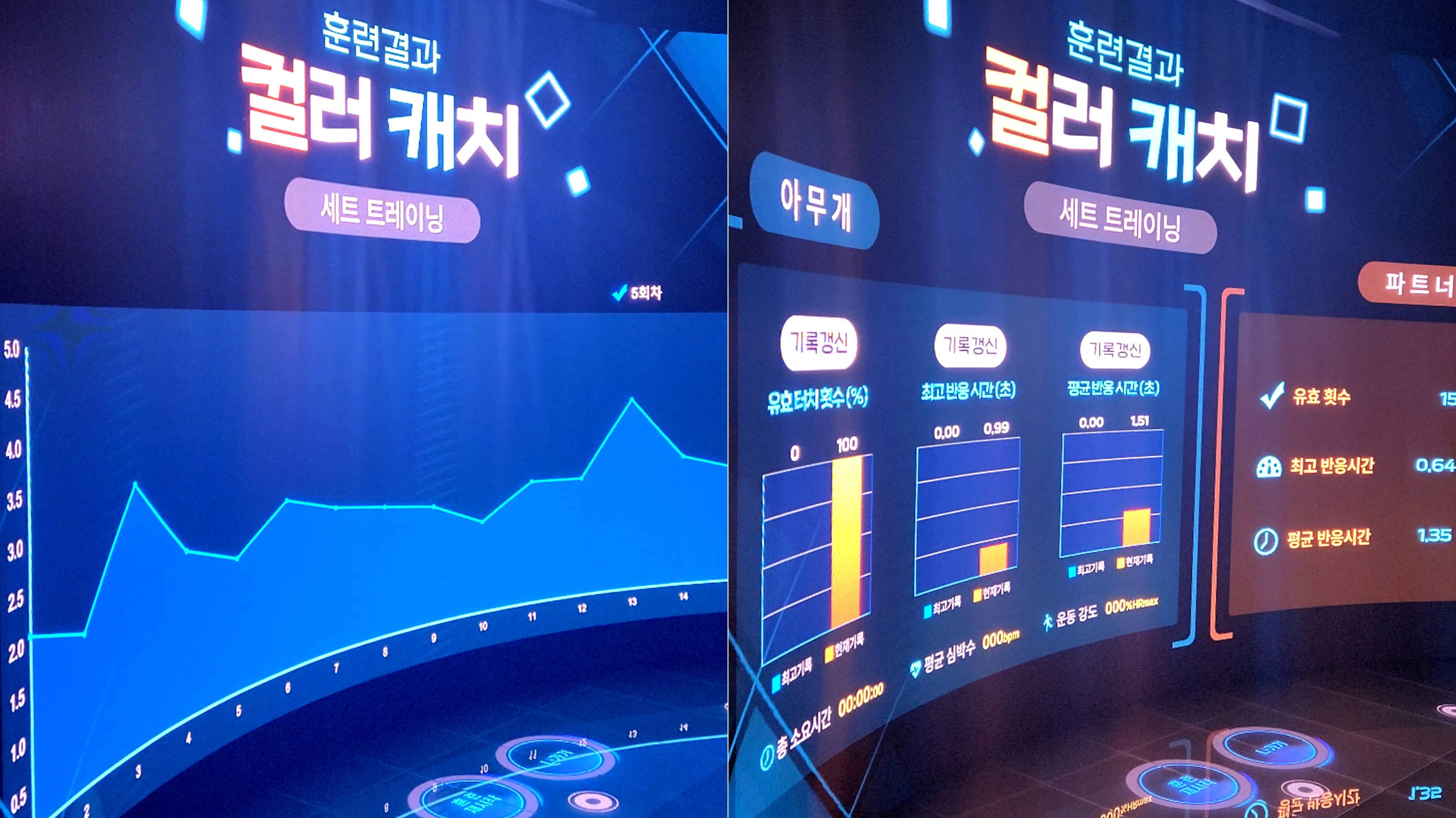 We produced a total of 6 types of content, including 3 types of player physical training content (side step, color catch, and Harvard step), 1 CMS, 1 type of player physical strength record statistics program, and 1 type of alpine ski simulation program, so that players can adapt to the weather or season. We have created an environment where you can train freely without restrictions.