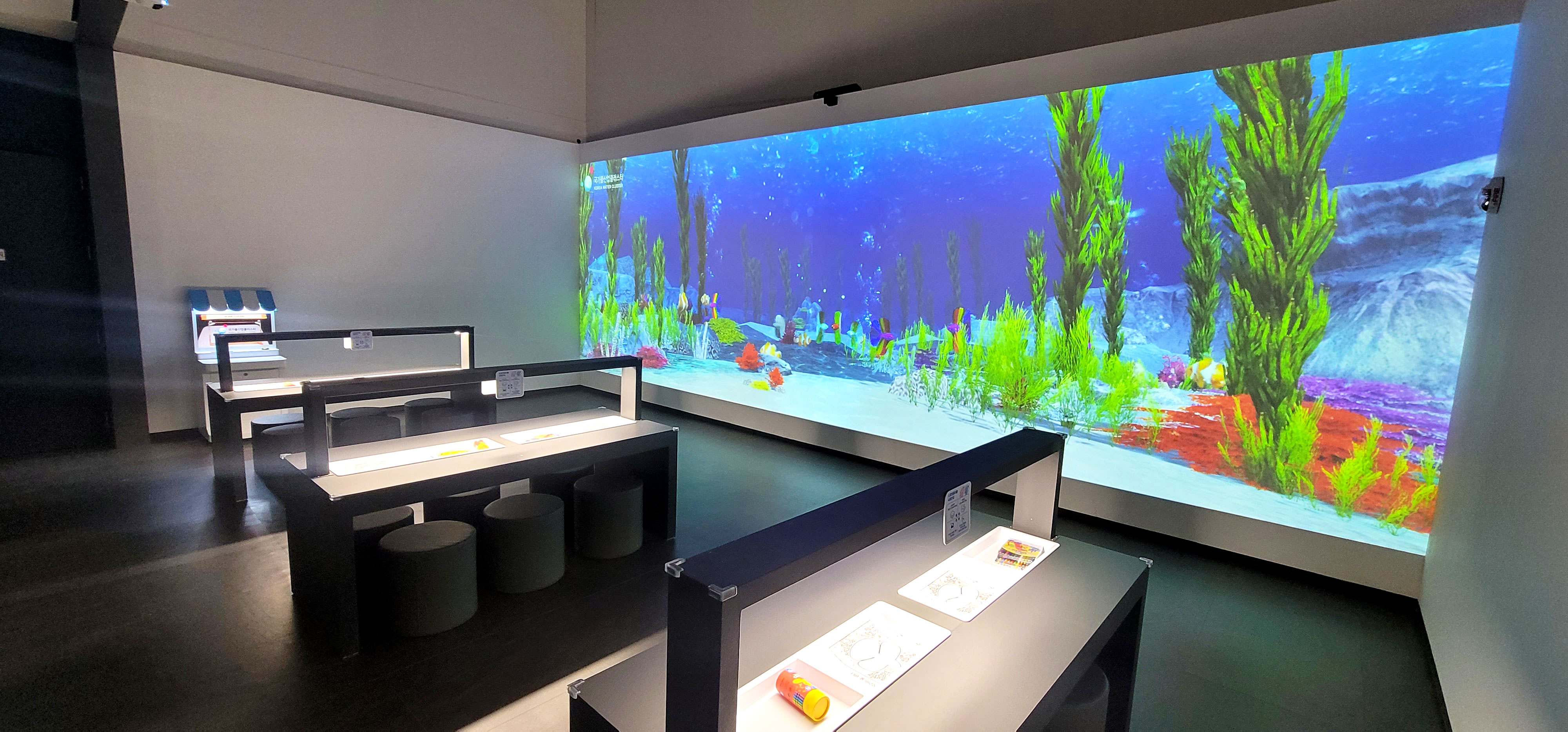 국가물산업클러스터 홍보전시관 ‘라이브 스케치 존’은 하수처리를 통해 깨끗해진 물속 생태계를 주제로, 사용자의 드로잉이 실시간으로 디지털 공간에 반영되는 인터랙티브 체험 공간입니다. 관람객은 바다 생물을 직접 색칠하고 화면에 투영함으로써 정화된 수질 환경 속 생태계 변화를 자연스럽게 경험할 수 있으며, 이를 통해 환경 메시지를 직관적으로 전달받는 참여형 콘텐츠로 기획되었습니다.