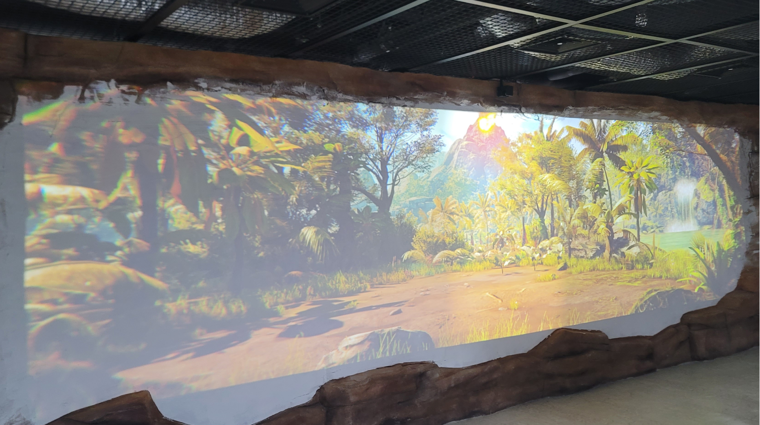 벽면의 공룡을 터치하면 재미있는 상호작용이 일어납니다!