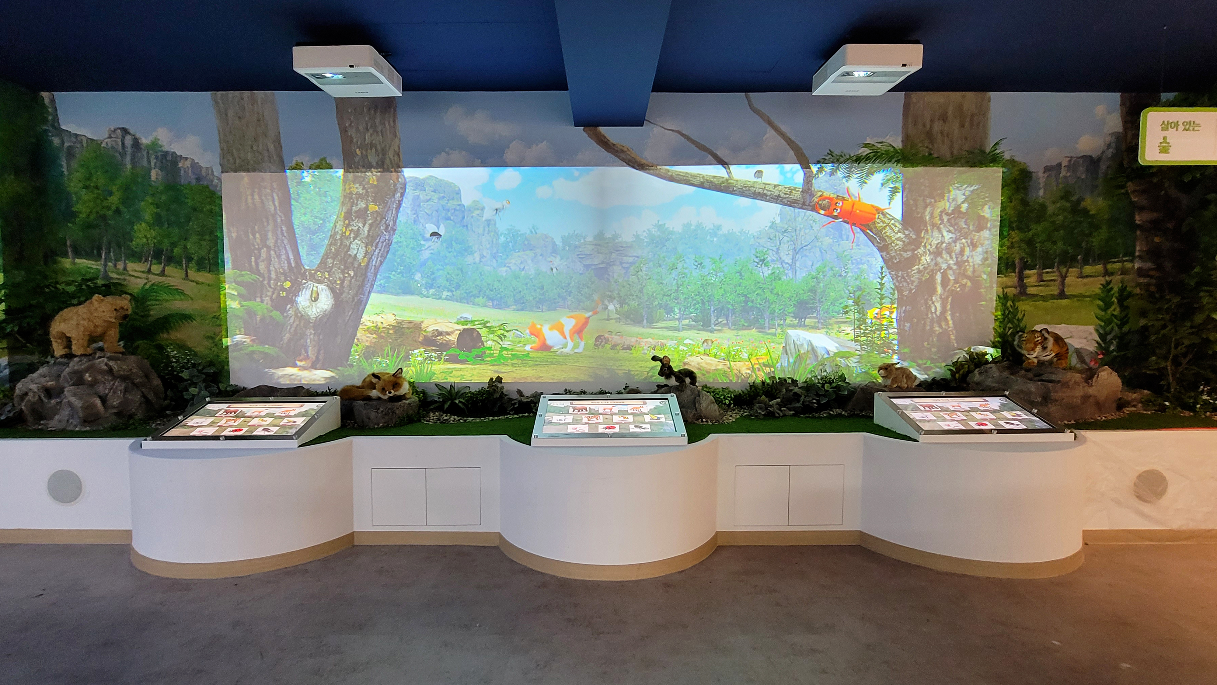 부산 유아교육진흥원의 유아체험 학습공간 ‘신기한 세상’ 내의 ‘살아있는 숲’ 디지털 체험 콘텐츠를 기획 및 제작하였습니다.